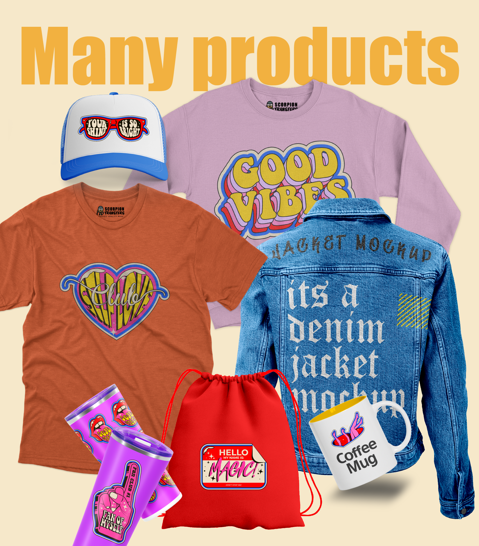 DTF transfers that work with full color designs on every product material, color, and stretch level.